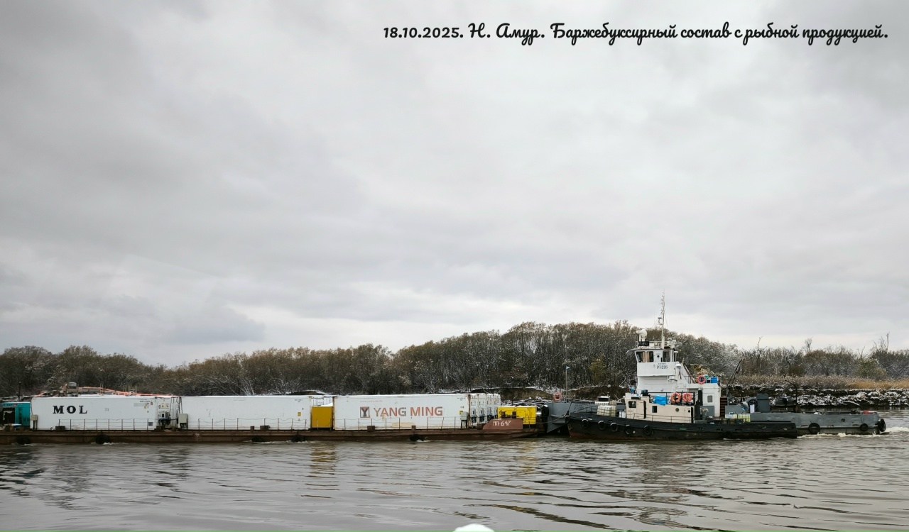 В грузовом порту Фуюань на 59 км Среднего Амура в последнем рейсе находится буксир АО «ХРТП» РТ-670 с двумя баржами с которых выгружается медный концентрат с Малмыжского месторождения. Пассажирские перевозки на Нижнем Амуре судами СПК, на маршрутах международных пунктов пропуска в Хабаровском крае и ЕАО, а также на местных линиях у Комсомольска и Хабаровска завершены. На участках ВВП Нижнего Амура где пока нет ледохода в последнем рейсе находятся 13 одиночных грузовых судов и ББС которые возвращаются в порты приписки и пункты отстоя, а также 3 буксира используемых для строительства подводного перехода газопровода Сила Сибири на 867-866 км Нижнего Амура.